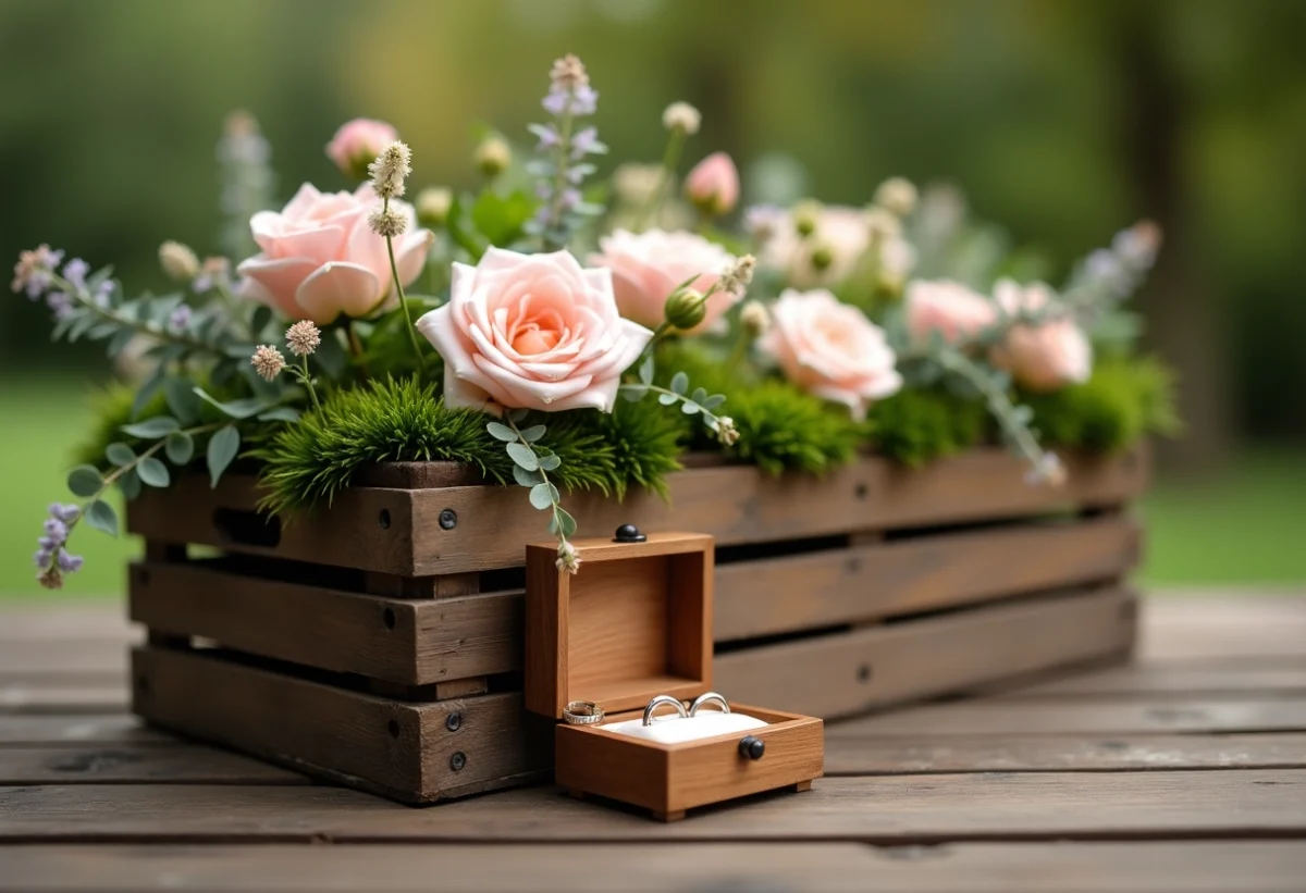 Les matériaux utilisés pour créer un porte-alliance champêtre sont souvent issus de la nature. Le bois, par exemple, est une matière noble et durable qui s’intègre parfaitement dans une décoration de mariage champêtre. Cette approche écoresponsable reflète un engagement envers l’environnement, tout en ajoutant une touche d’authenticité à votre événement.